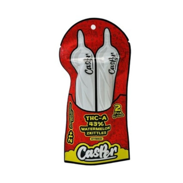 Indulge in the premium experience with CASPER THC-A Pre Rolls. Each pack contains 2 pre-rolls, each weighing 1 gram. These pre-rolls are expertly crafted with a variety of flavorful strains, including Alaskan Thunder Fuck, Cherry Lemon Gelato, Hawaiian Runtz, OG Kush, Royal Purple Kush, and Watermelon Zkittles.