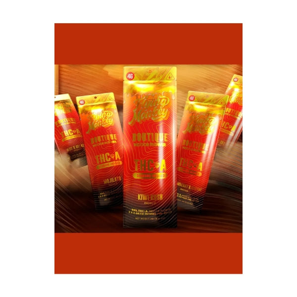 Experience the Flying Monkey Boutique THC-A Sativa pre-rolls, crafted for connoisseurs seeking a pure and uplifting experience. Each box contains 10 packs, with each pack featuring two 4-gram pre-rolls rich in THC-A. Designed for smooth, consistent draws, these pre-rolls offer a potent sativa profile known for energizing and focusing effects. Ideal for daytime use, this premium product is perfect for those who demand quality and effectiveness in their cannabis consumption.
