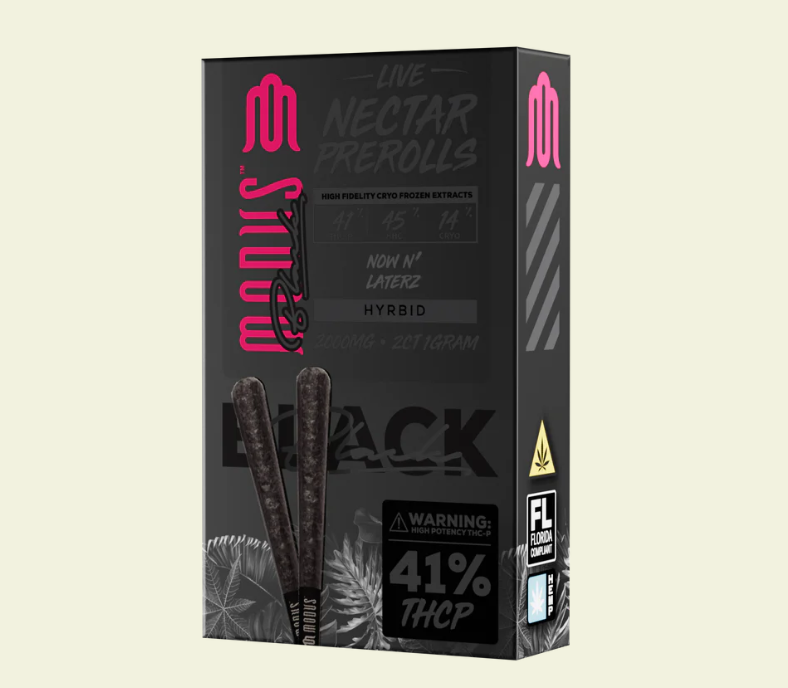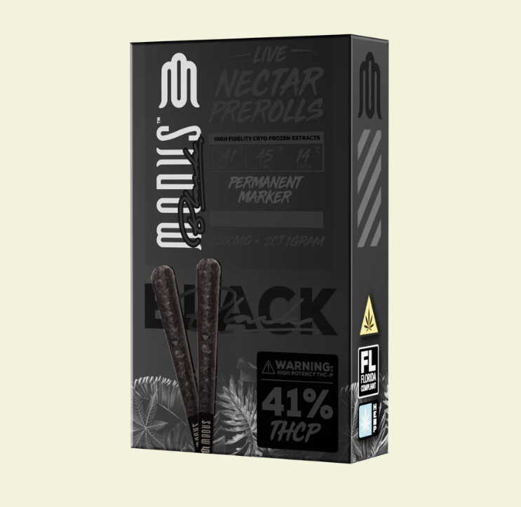 Adding to our premium line of fresh flower products, Modus Black redefines cannabis pre-rolls with a potent formulation crafted for superior performance. Each pre-roll strain combines high-potency cannabinoids, including THC-P, HHC, and HTE, with rich terpene profiles to deliver a full-spectrum, multidimensional experience.