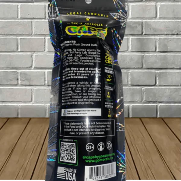 Caps THCa Pre-Rolls come in a 2 count pack or 10 pack box with each pre-roll protected by a dube tube. Each pre-roll contains 1g of premium organic indoor-grown hydroponic flower!