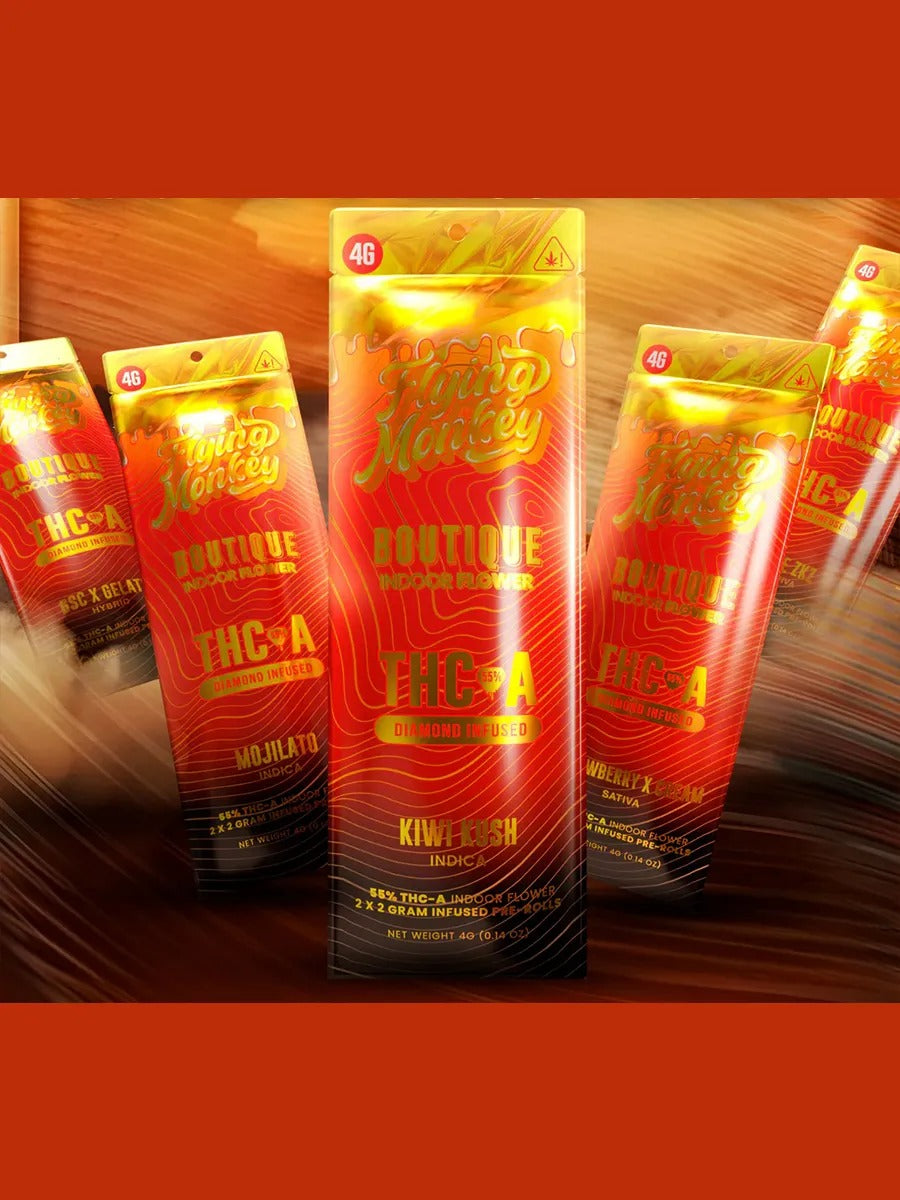FLYING MONKEY BOUTIQUE THC-A 4GM 2PK PRE ROLL 10CT/BX INDICA - MOJILATO