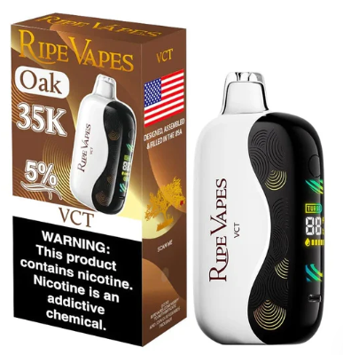 Try Ripe Vapes Oak 35K Disposable, featuring 18mL of prefilled e-liquid, a large battery, dual mesh coils, up to 35,000 puffs, and a 25W turbo flavor boost.