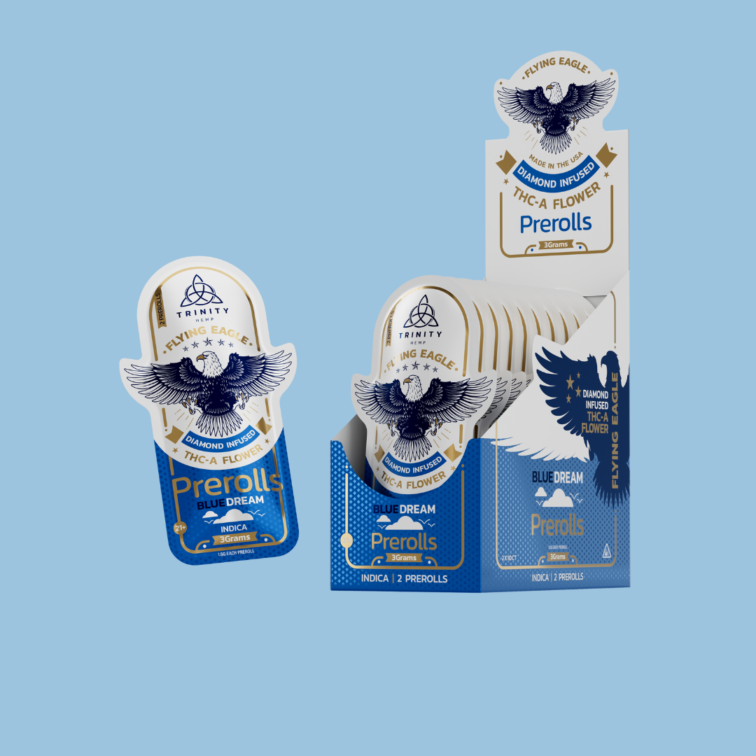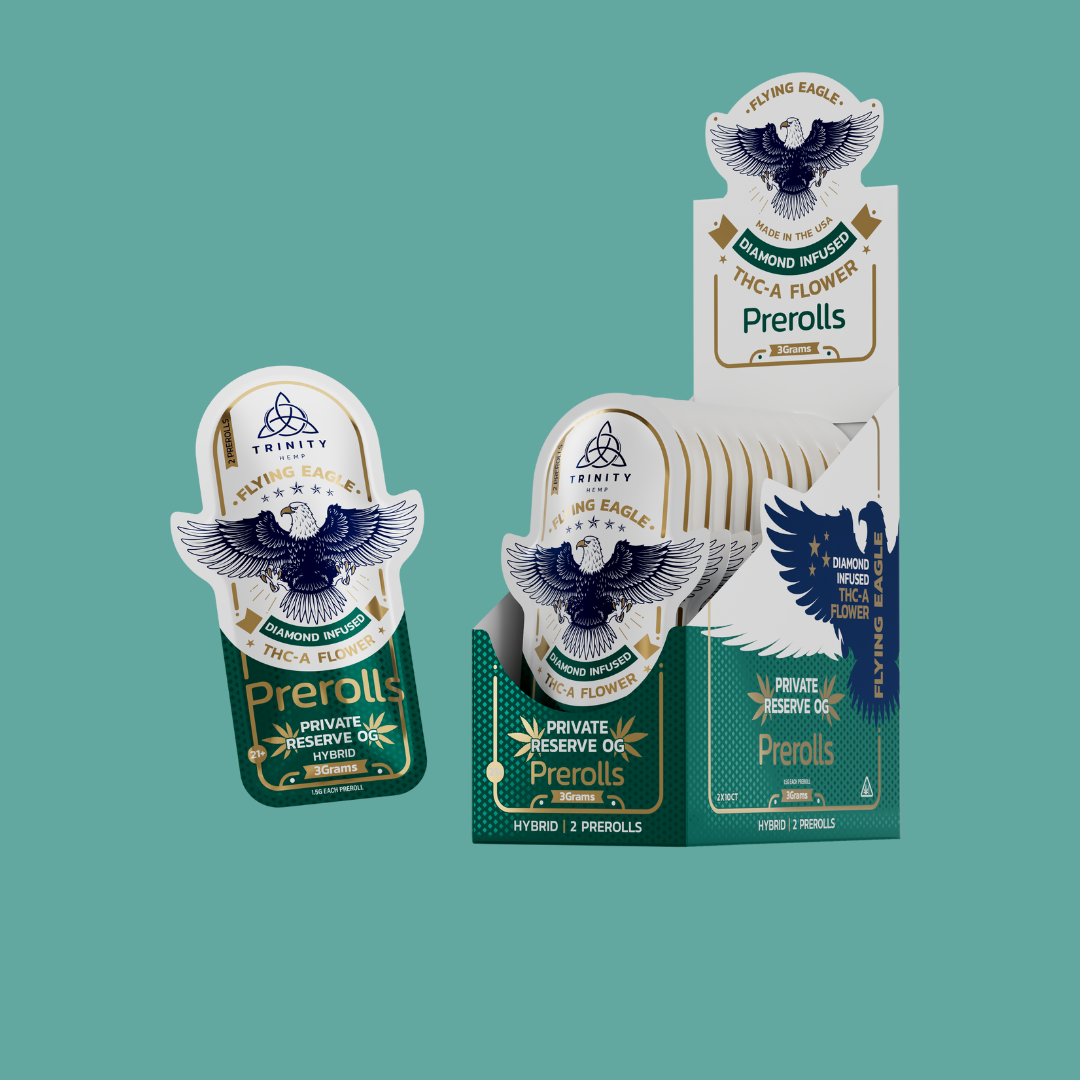 The Trinity Hemp Flying Eagle prerolls offer a variety of flavors and effects to suit your mood.